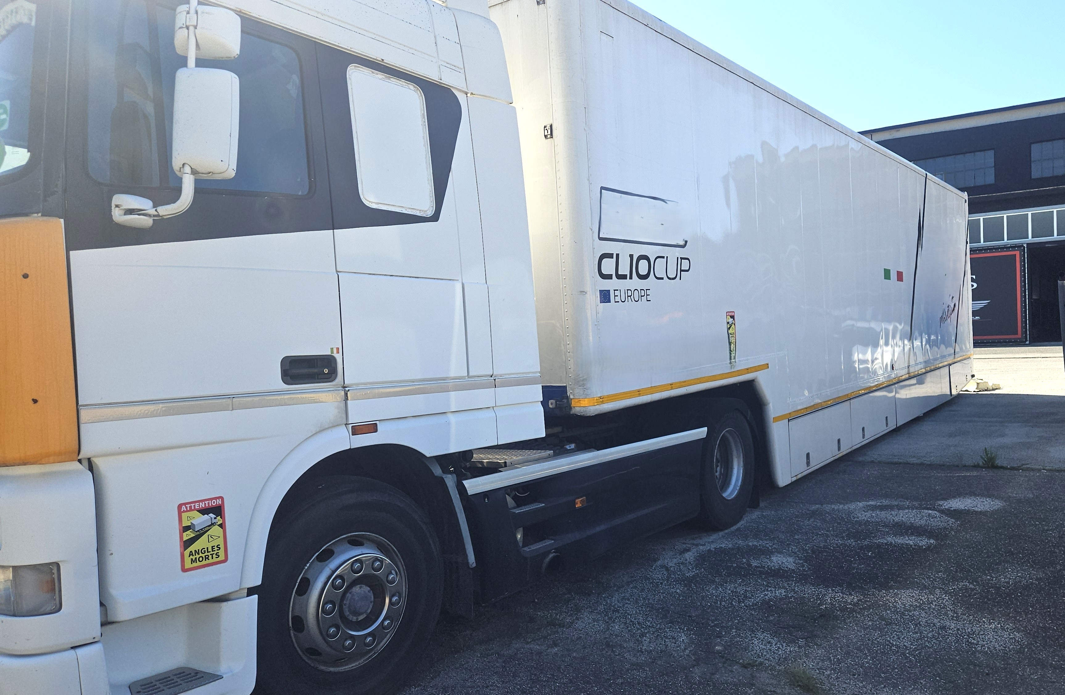 DAF 95/XF del 2007 con revisione di legge, uso speciale officina mobile, Km. 734.348, con bilico Zorzi attrezzato per il trasporto di 4 Turismo anche TCR. Sponda idraulica da 2.0 T, doppio piano idraulico interno regolabile in altezza, comodo montacarichi laterale, impianto di aria compressa con compressore, generatore Honda con relativo impianto, le gomme della macchina hanno 3 anni mentre quelle del bilico 1 anno quindi circa 15.000 Km. Il mezzo è completo di tenda da 9 mt. con porte scorrevoli finestrate ed illuminazione LED, pavimento arrotolato da mt.13,60 x 8. Prezzo € 50.000,00 + IVA | ||